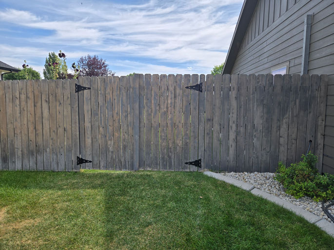 Client needed heavy gate rehung and double gate built from pre-existing fence. Needed much larger gate post for single gate.
